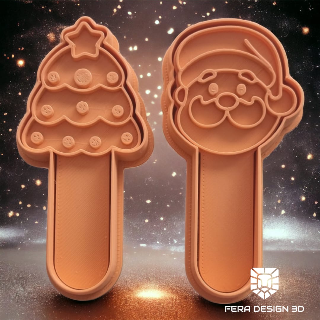 Kit contém: 1 cortador e marcador Stick de Árvore e 1 de Papai Noel.