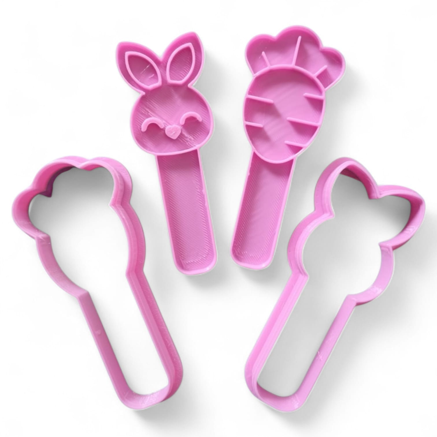 Kit completo contém: 2 cortadores e marcadores sticks, 1 de coelho e 1 de Cenoura
